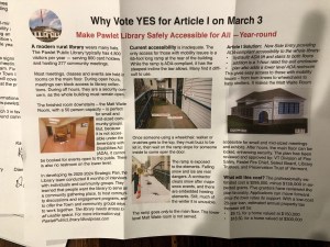 five things not mentioned, informational meeting, pawlet public library, proposed construction project, recent mailing