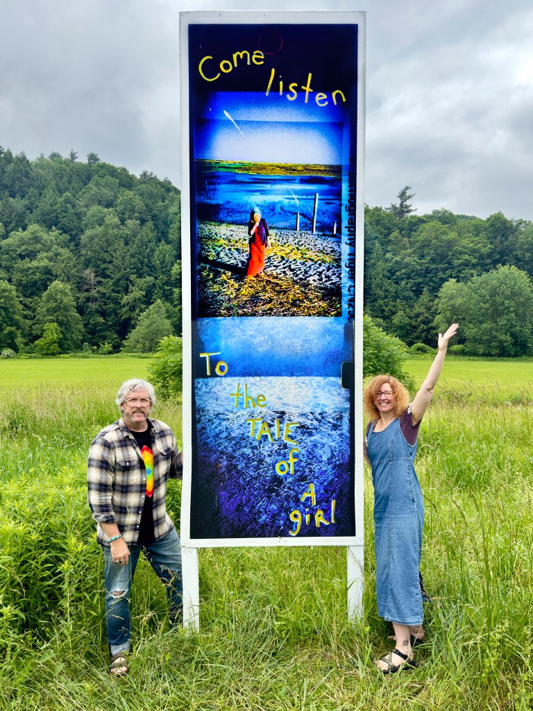 The Hayfield Art Gallery is the creation of EveNSteve, the husband-and-wife team of author Eve O. Schaub and artist Stephen Schaub. It is outdoors, free, and open to the public and is located in Pawlet, Vermont. Five monumental outdoor artworks compose this year’s exhibition, including one that reaches thirteen feet in height and another that is thirty feet long.